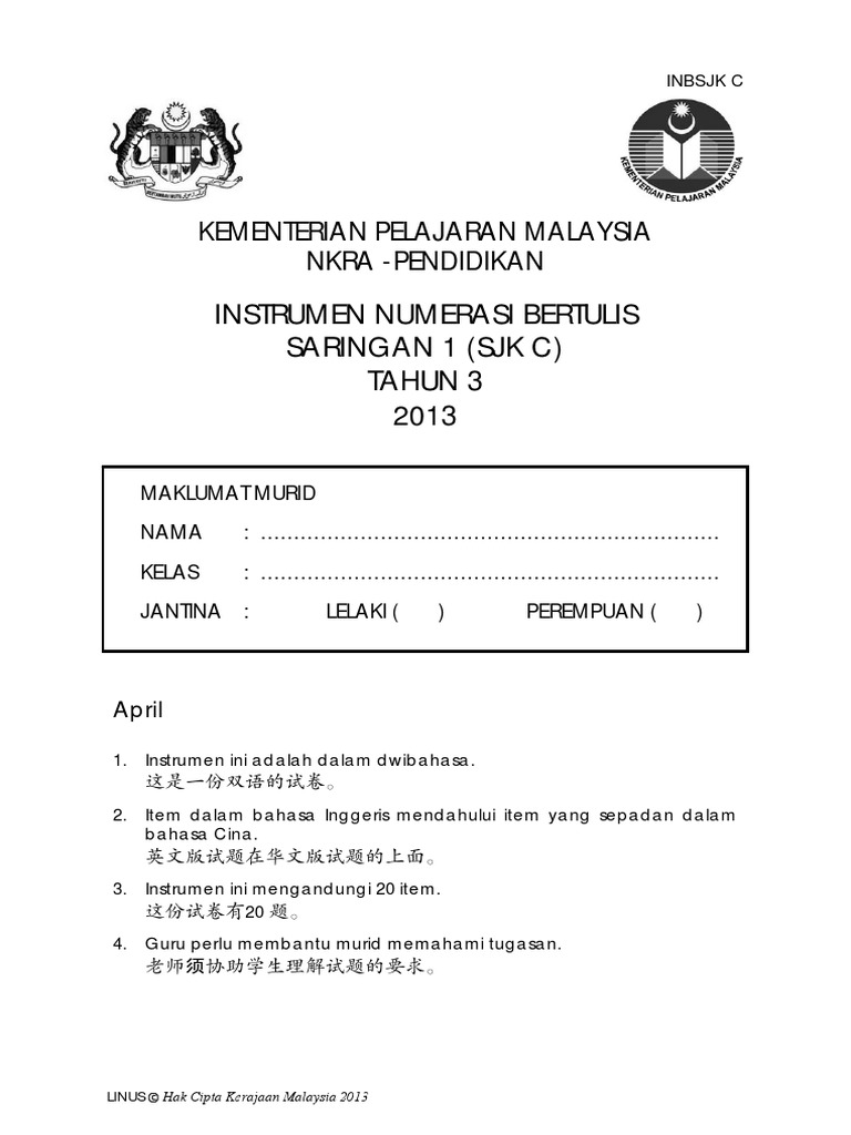 Soalan Linus Tahun 1 2016 / Manual Pentadbiran Instrumen Saringan Literasi Membaca Tahun 3 Saringan 1 2016 Pdf Simbol Teks : Apa itu ujian saringan linus tahun 1?. 0 ratings0% found this document useful (0 votes). Bank soalan peperiksaan akhir tahun 1 hingga tahun 6. Savesave soalan ujian tahun 1 2016 mac for later. Apa itu ujian saringan linus tahun 1? Use the download button below or simple online reader.