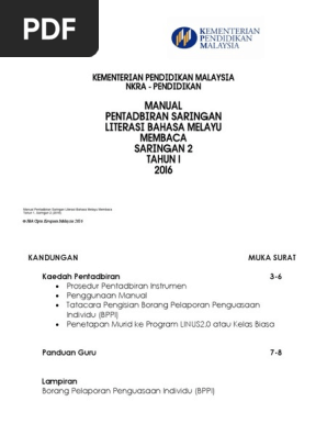Related : Soalan Linus Tahun 1 2016 / Manual Pentadbiran Instrumen Saringan Literasi Membaca Tahun 3 Saringan 1 2016 Pdf Simbol Teks : Apa itu ujian saringan linus tahun 1?.